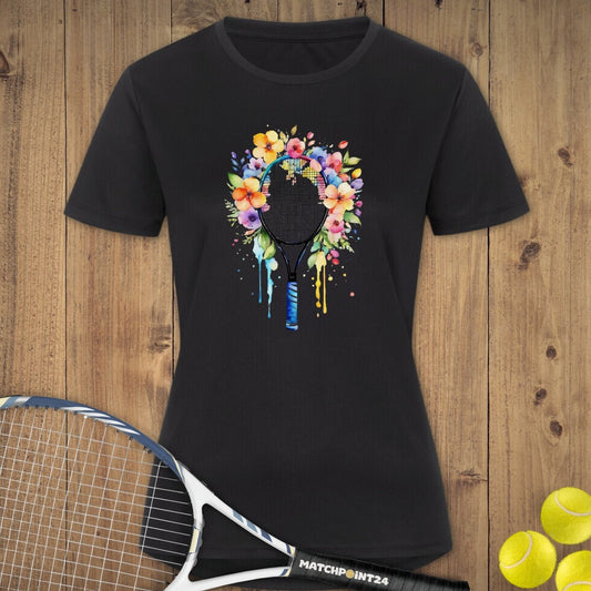 SPARE 25% BLACK DEALTennis Racket Flora | Damen Sport T-Shirt